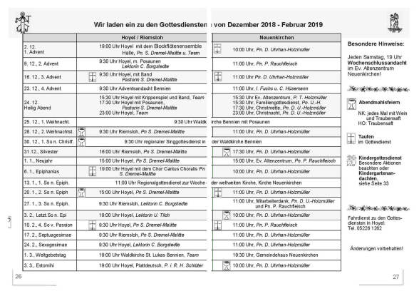 Gottesdienstplan Dezember 2018 - Februar 2019